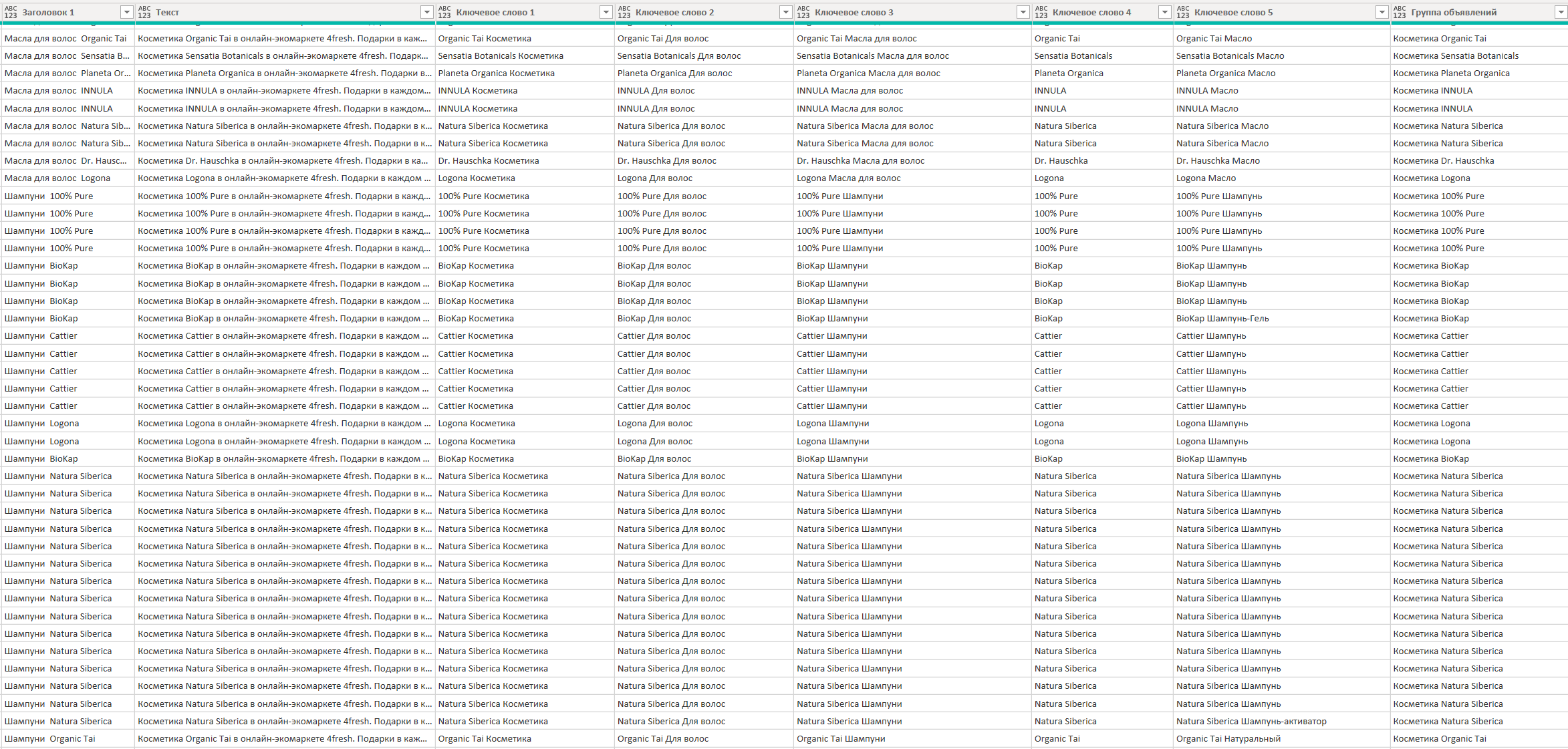 - Генерация объявлений и ключевых слов из категорий и названий товаров оставляет мелкие косяки, которые исправить можно или допилом самих таблиц или уже на этапе импорта.