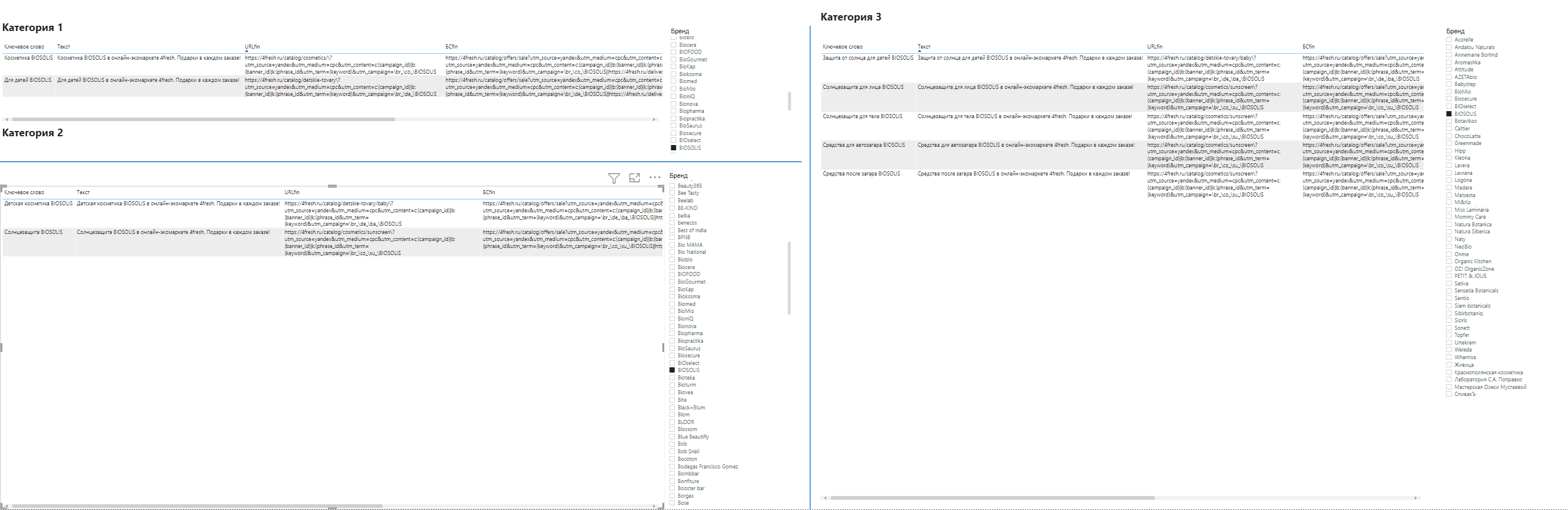 - Обновлять кампании легче. При появлении нового товара/категории/бренда мы просто обновляем данные в Power BI и импортируем в Директ новую семантику.